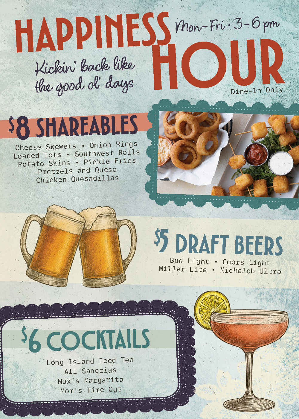 At Max & Erma’s, we bring you back to the good ol’ days with every bite. From our signature gourmet burgers and award winning tortilla soup to fresh-baked cookies that are often accompanied by a glass of milk and a good conversation. For over 50 years, we’ve been a place where flavors are savored, and the spirit of togetherness shines. Dining here feels like gathering at grandma’s kitchen table—warm, welcoming, and full of laughter. With exceptional hospitality that makes every guest feel like family, we’re the go-to place where generations connect, stories are shared, and memories are made. Whether you’re catching up with old friends or introducing the little ones to a cherished tradition, we invite you to pull up a chair, relive the classics, and create moments worth remembering.